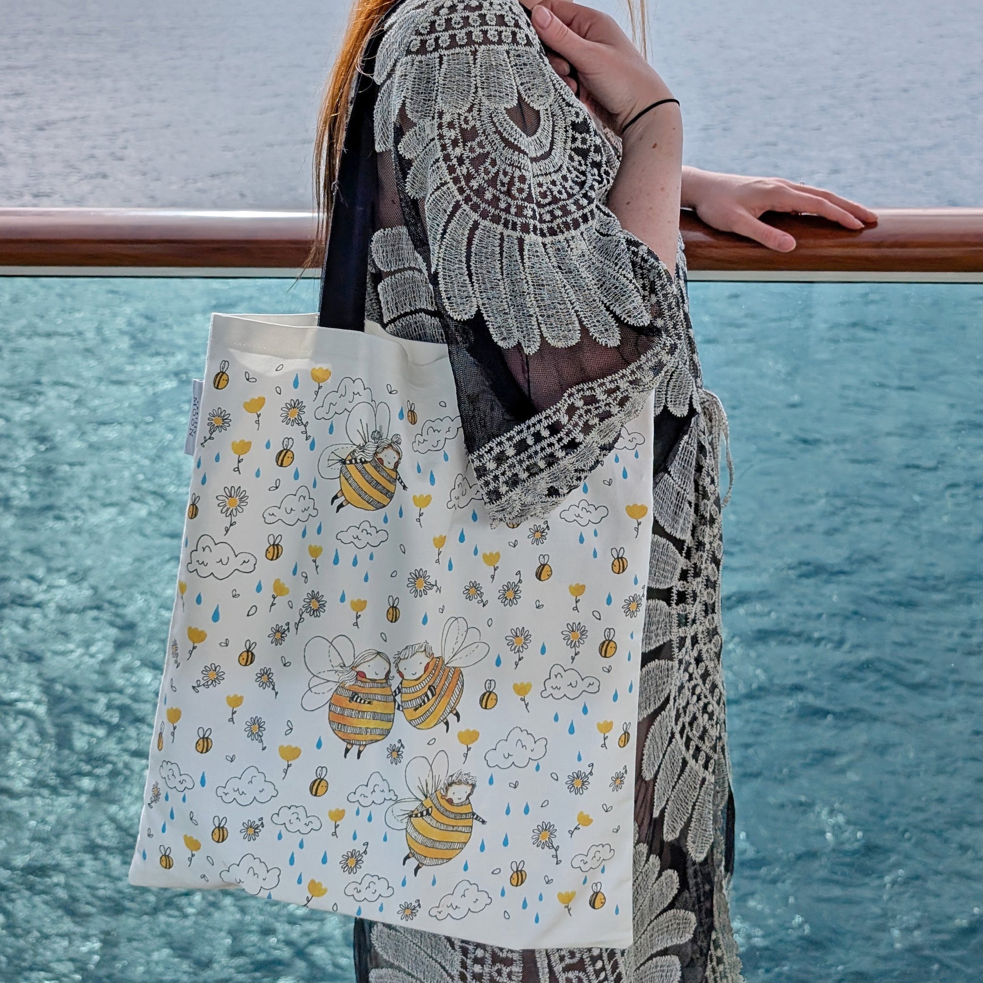 Look stylish and show your love for the bees with this beautiful bee cotton tote bag!